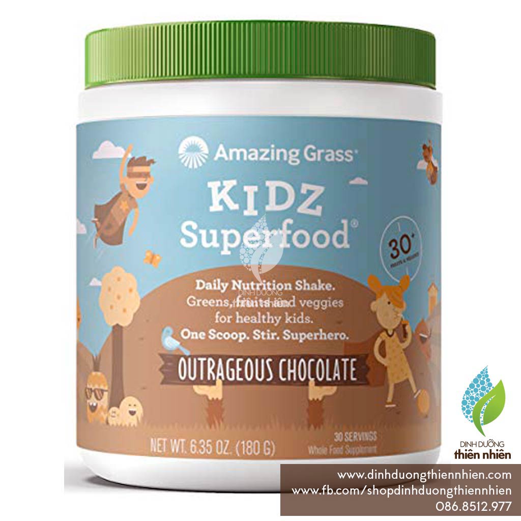 Bột Siêu Thực Phẩm Hữu Cơ Cho Trẻ Em Amazing Grass Kidz SuperFood, Vị Chocolate, 180g/ hủ
