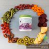 Màu xanh / Tím Củ cải đường, mận, nho tím, quả việt quất, nước mía ép cạn hữu cơ, Inulin hữu cơ, hương vị tự nhiên, chất xơ yến mạch hữu cơ, nước ép thực vật cho màu (từ cà rốt và dâm bụt hibiscus), guar gum hữu cơ, pectin táo, cỏ stevia, lợi khuẩn (l. acidophilus), silica (chống kết khối)