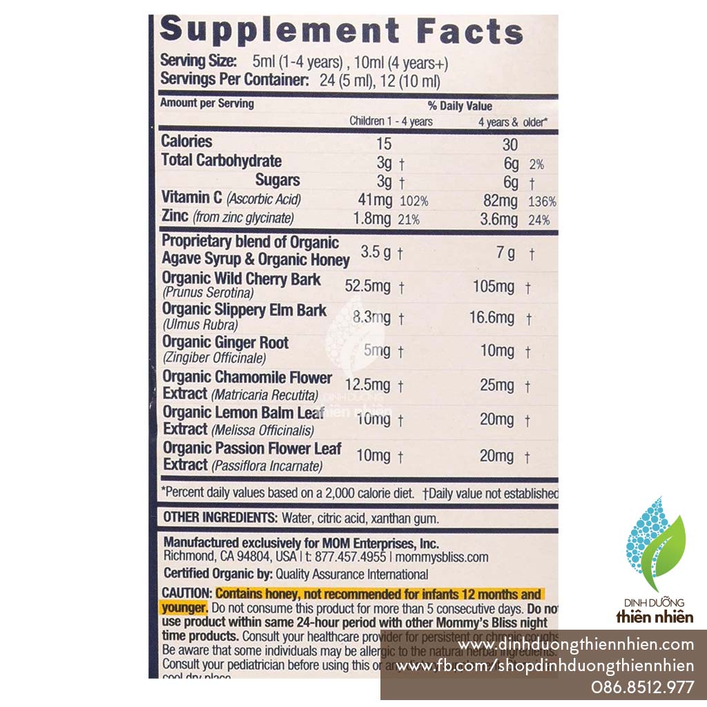 Siro Hữu Cơ Giúp Giảm Ho và Tăng Cường Đề Kháng Cho Bé BAN ĐÊM (Từ 1 Tuổi Trở Lên) Mommy’s Bliss ORGANIC KIDS COUGH SYRUP & MUSCUS RELIEF là sự lựa chọn tuyệt vời cho bé từ 1 -12 tuổi.